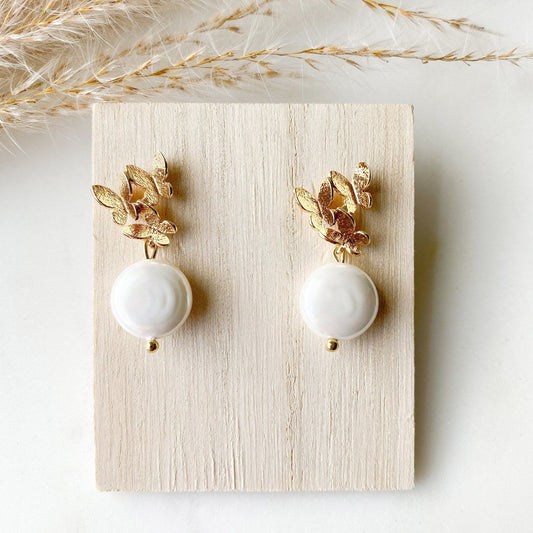 Echte Perlenohrringe Braut 24k vergoldet "Eliana" Hochzeitsschmuck