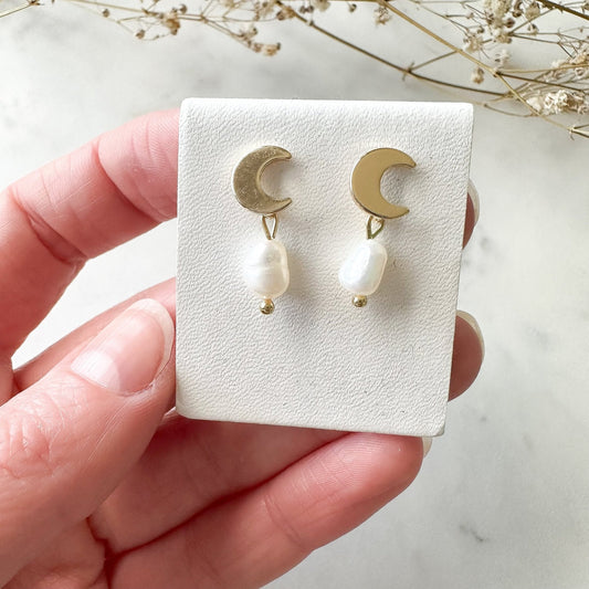 Echte Süßwasserperlen-Ohrringe "Mond" golden mit Perle Perlenohrringe
