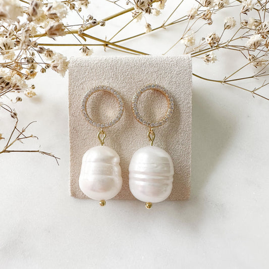 Echte Süßwasserperlen-Ohrringe "Circle" golden mit Perle Perlenohrringe