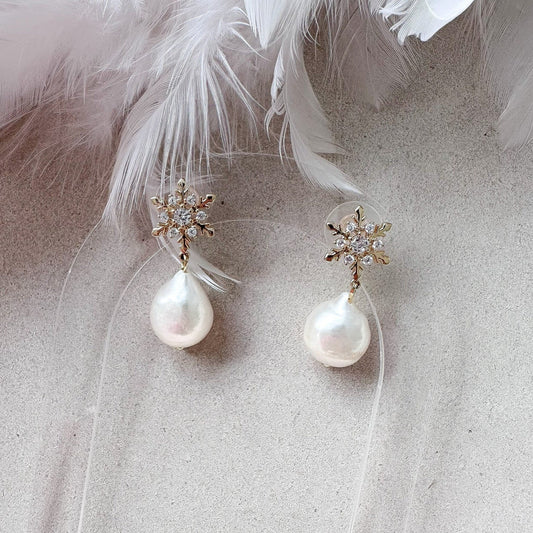 Süßwasserperlen-Ohrringe "Schneeflocke" golden Perle