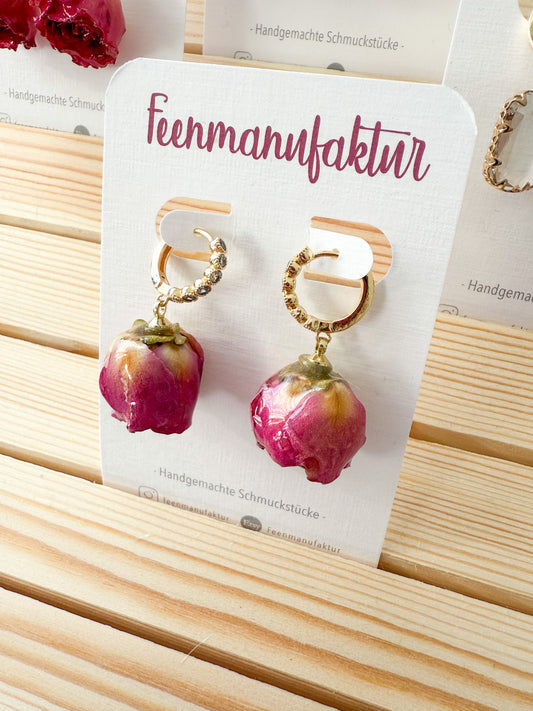 Glitzernde Rosen-Ohrringe „Rosalia“ in Epoxidharz