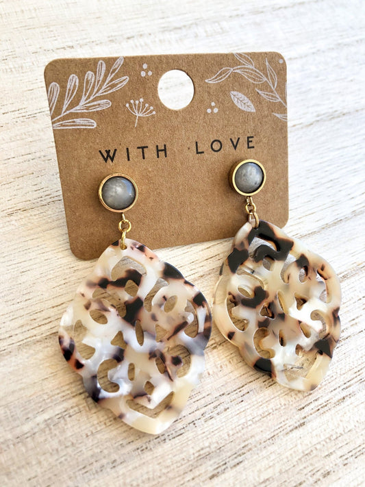 Barock Resin Ohrringe "Kiana" Leopard und beige
