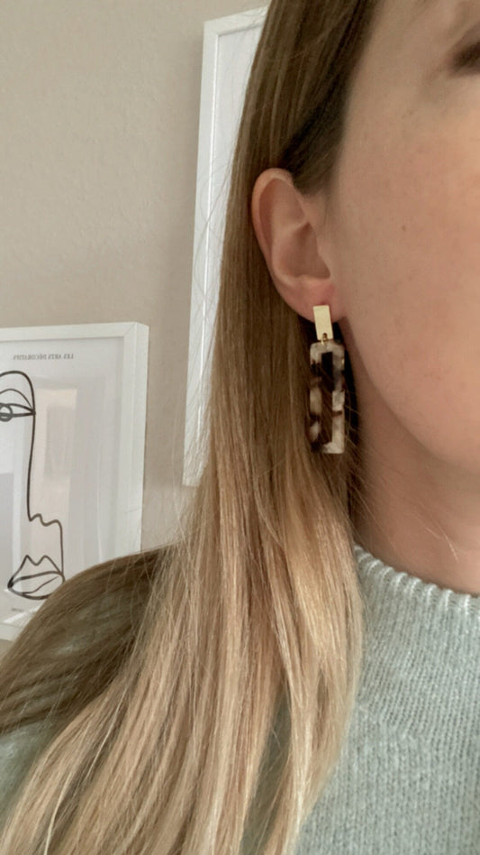 Epoxidharz Ohrringe "Layla" Leomuster Resin - Stecker in gold, silber & roségold