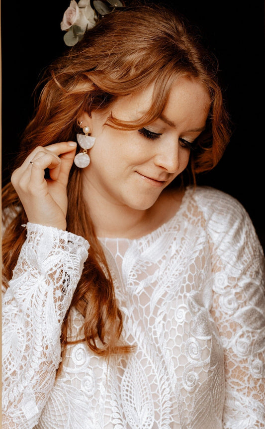 Perlmutt beige Polymer Clay & Resin Mix Circle Ohrringe