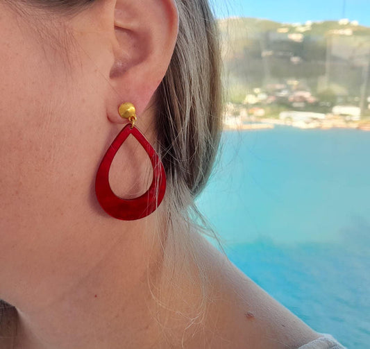 Resin Ohrringe "Anna" rot oder grün - Stecker gold, silber & rosegold