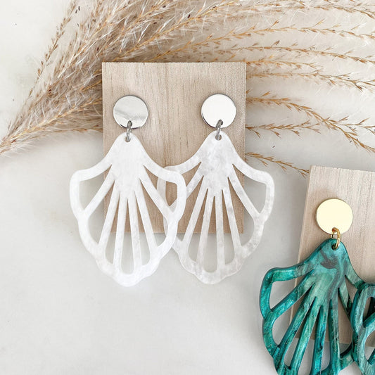 Resin Ohrringe "Muschel" weiß oder blau grün