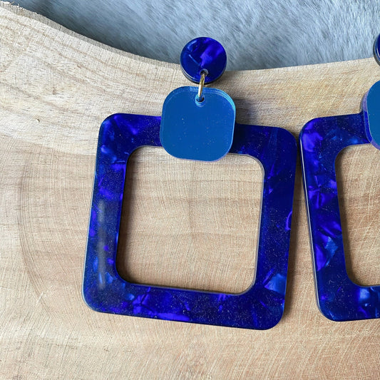 Große Statement Ohrringe "Nele" in blau Metallic Resin