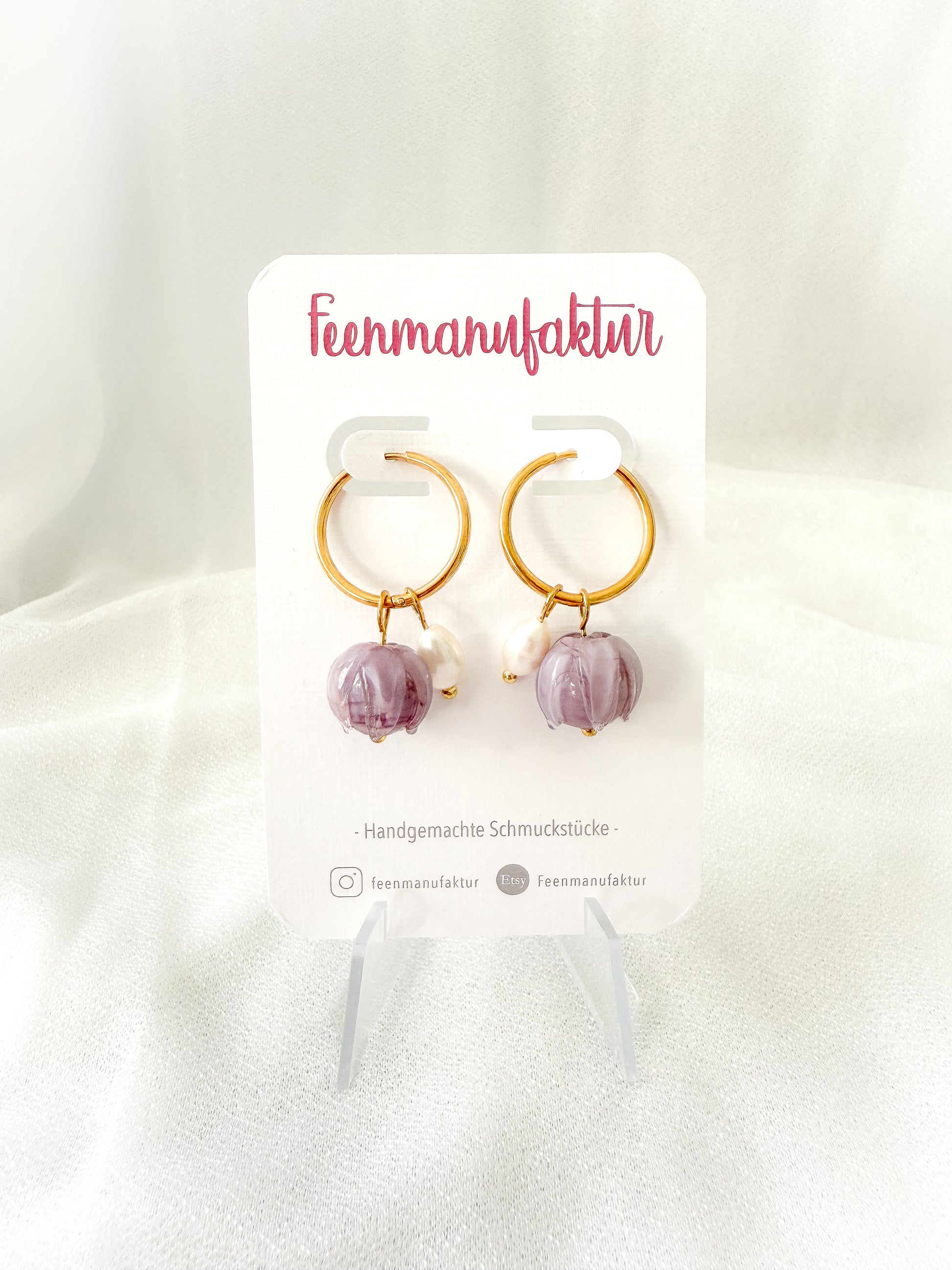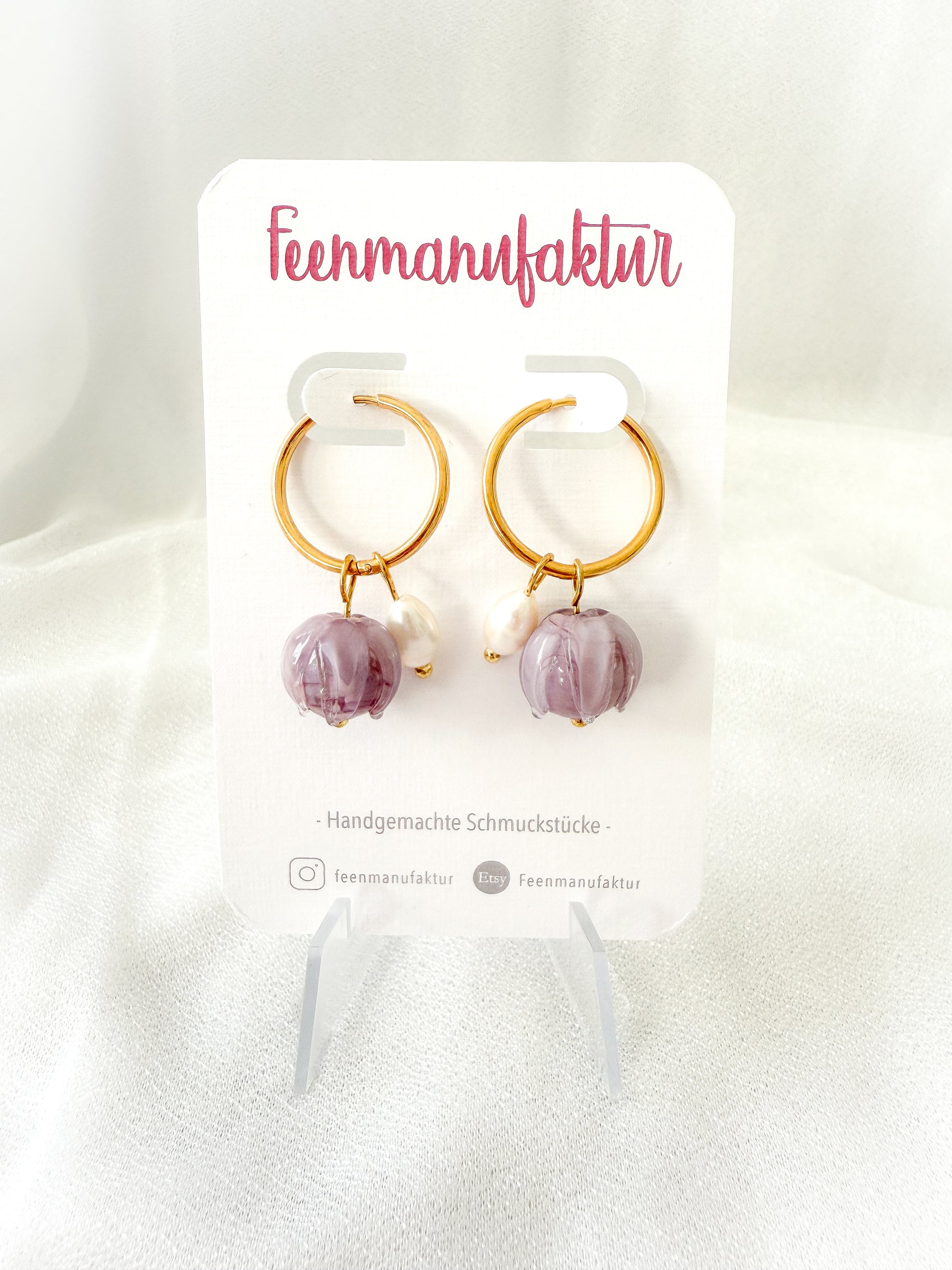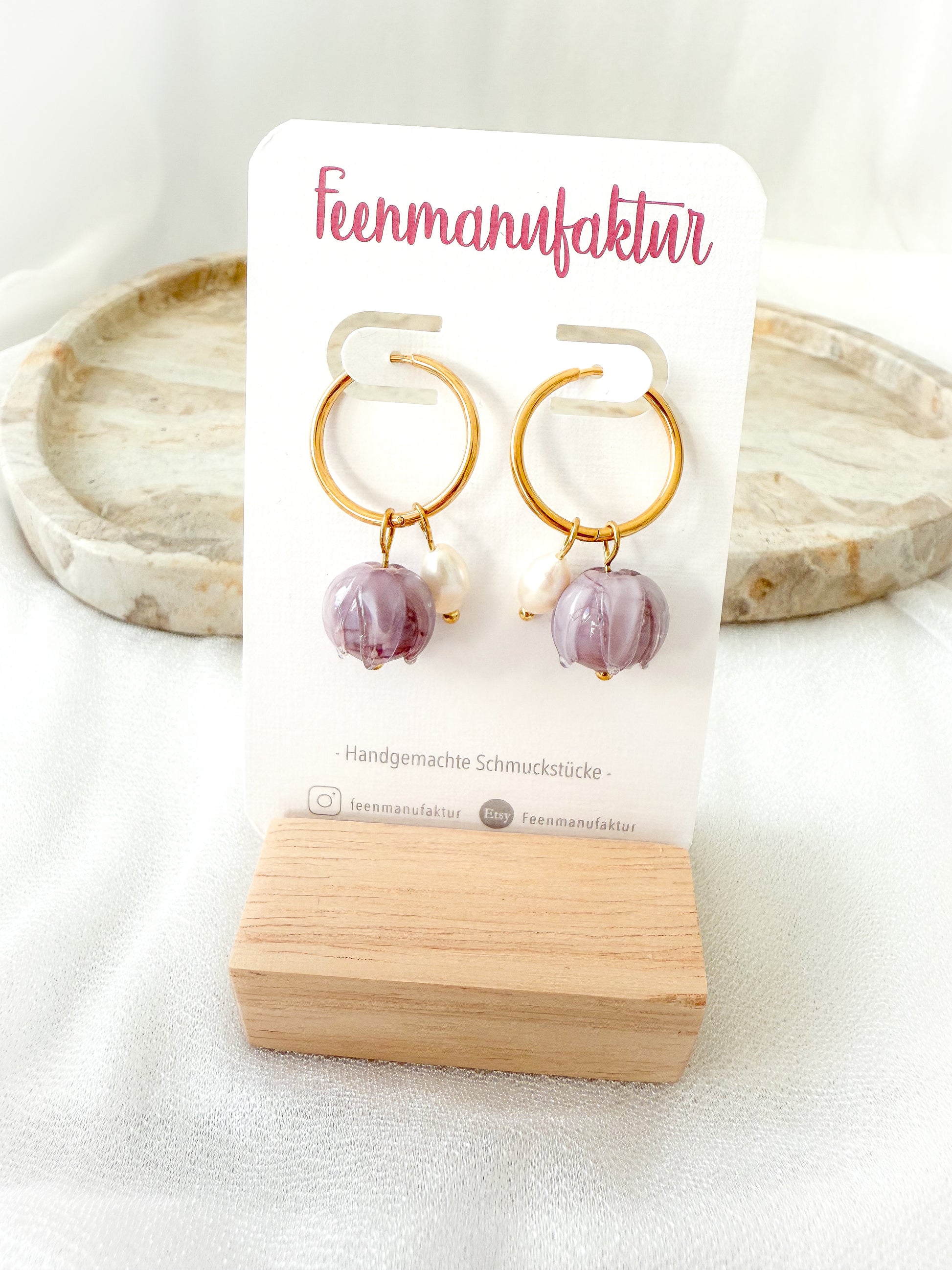 - Material: Lila Knospe, echte Süßwasserperle, goldene Creolen