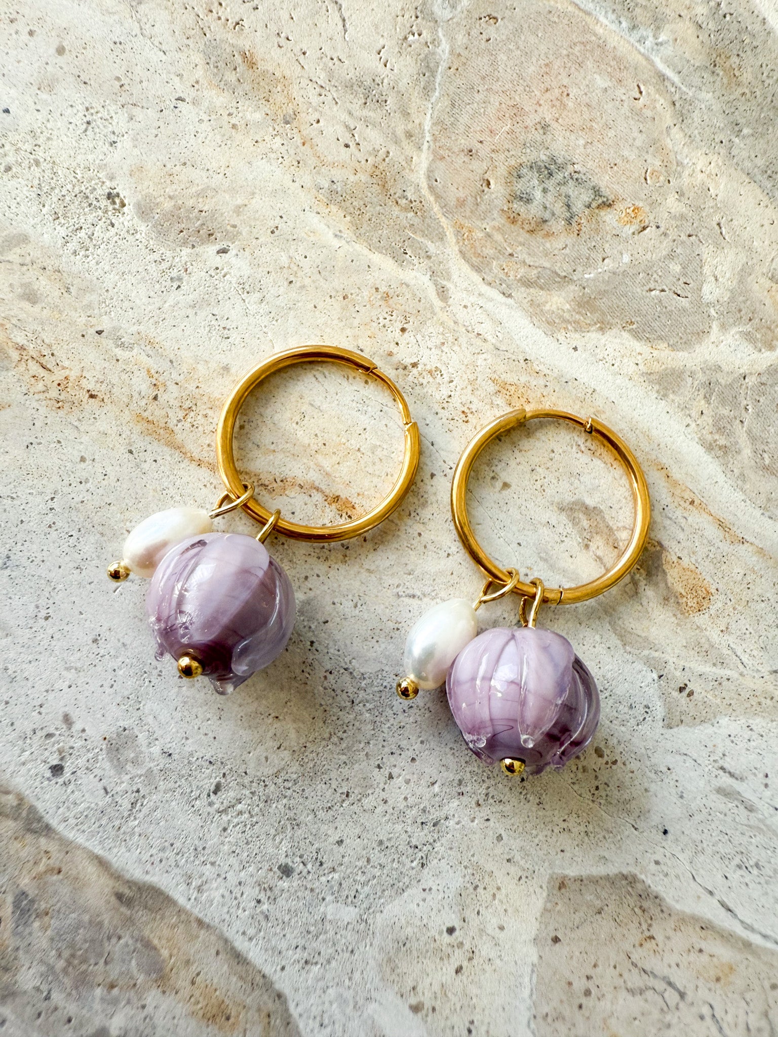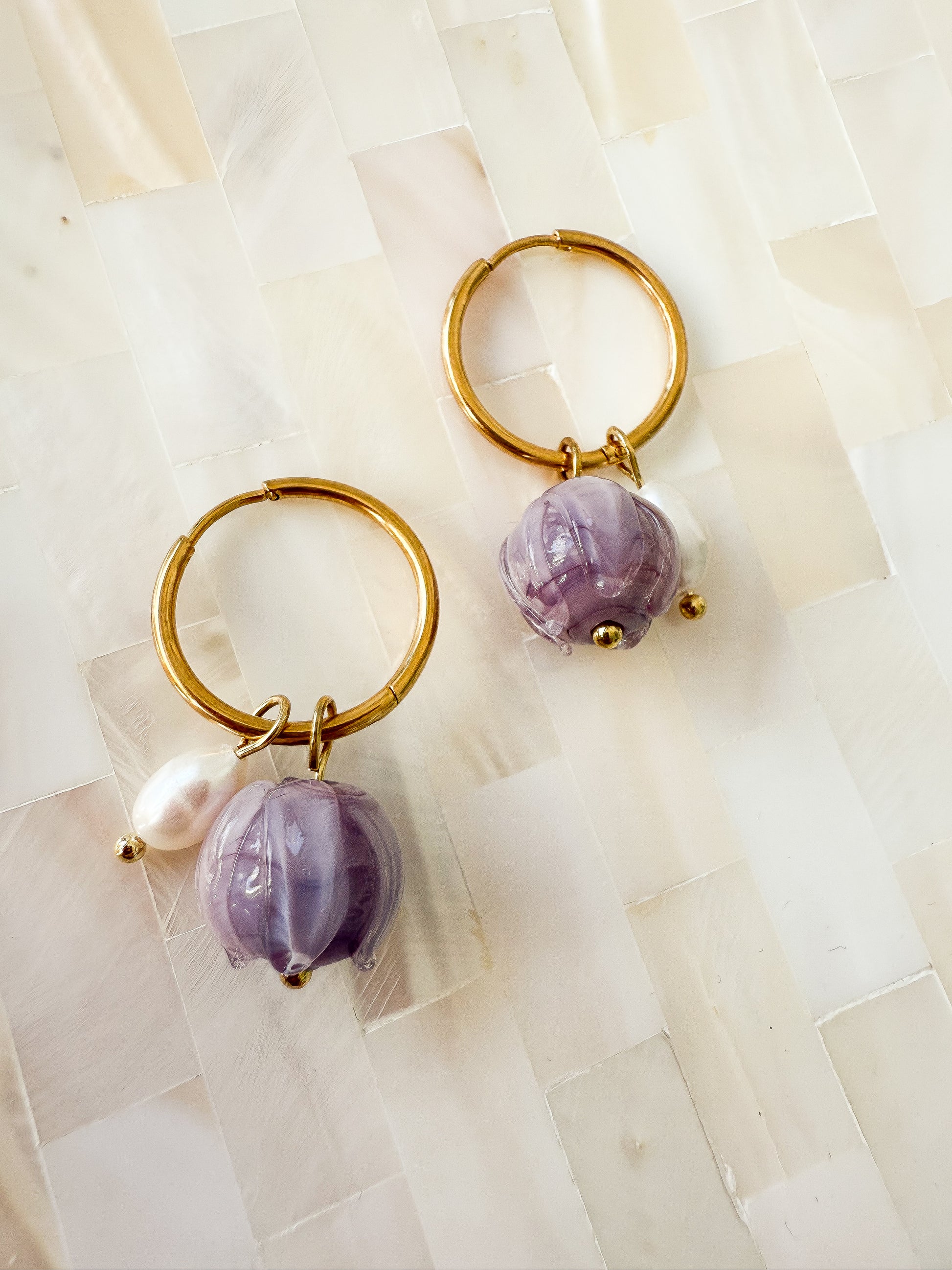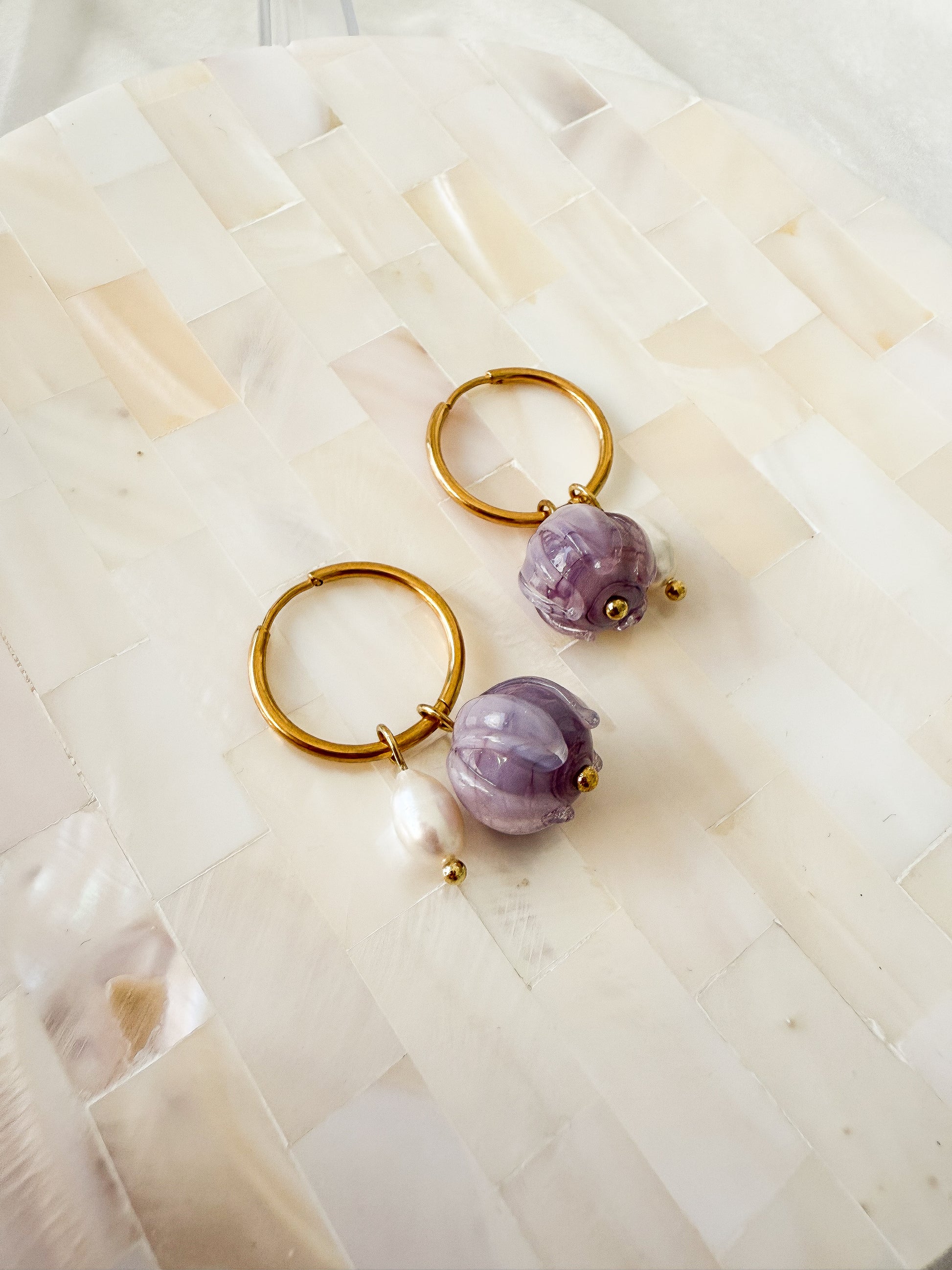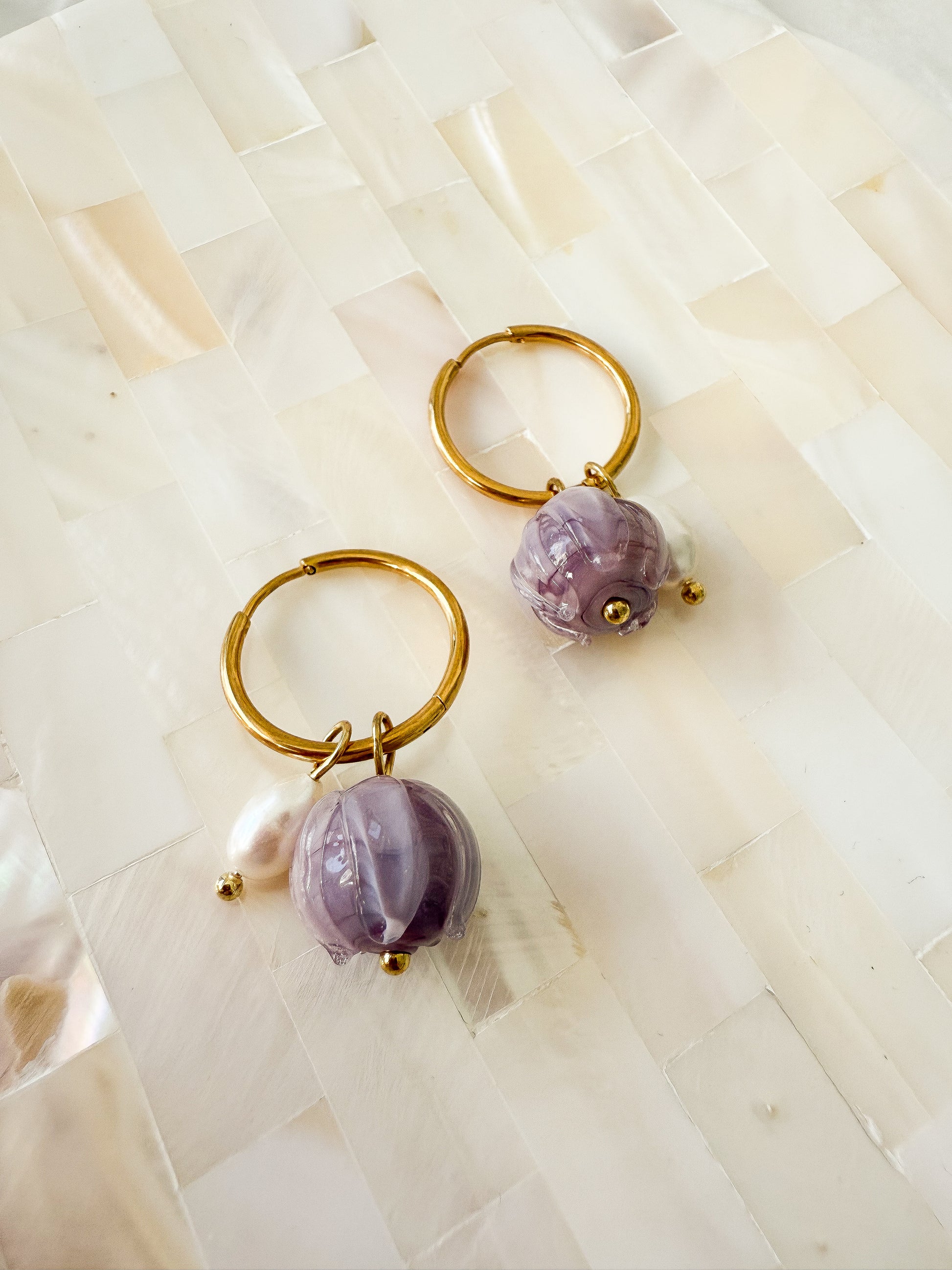 Lila Knospen-Creolen „Amara“ mit Süßwasserperle