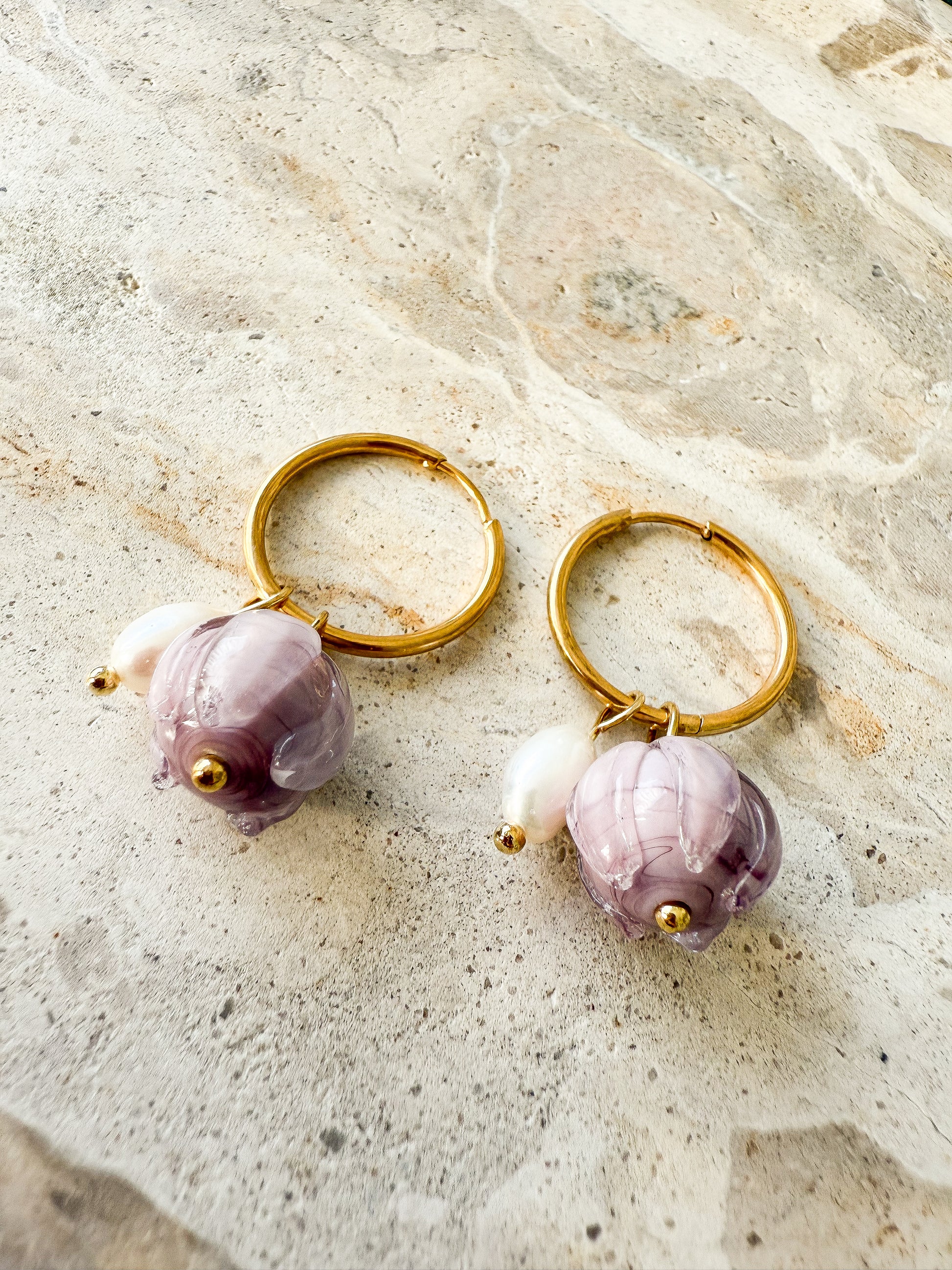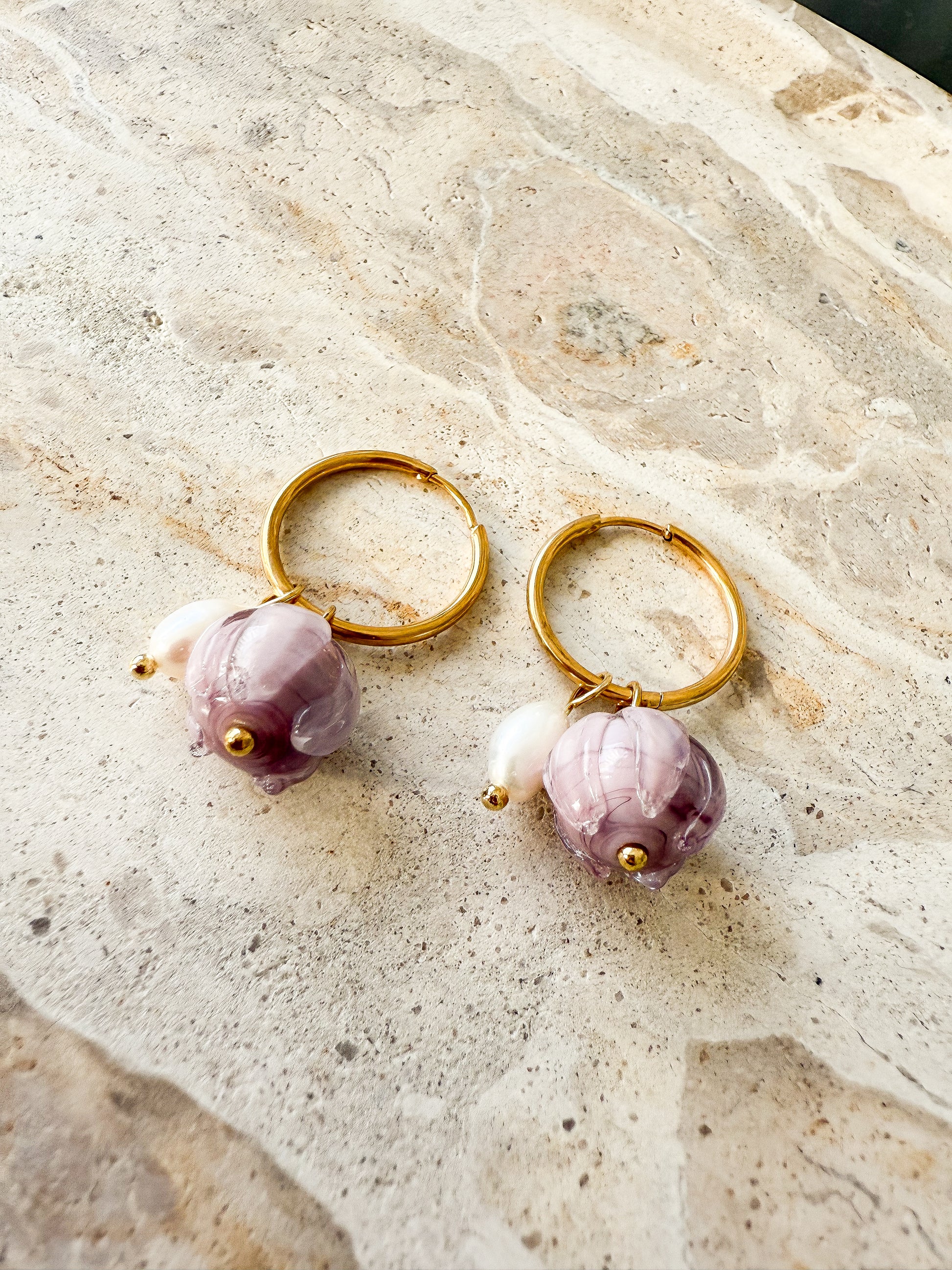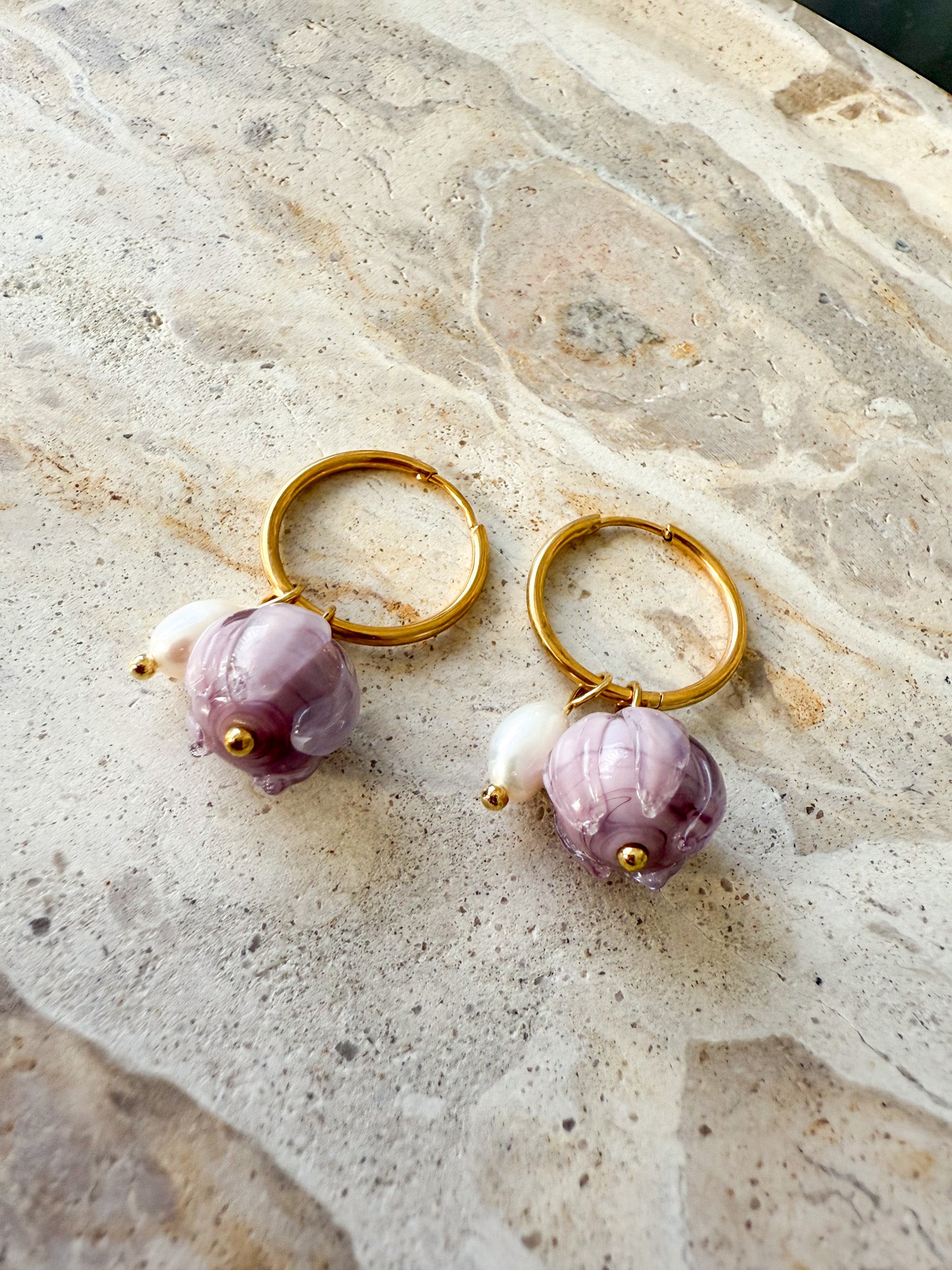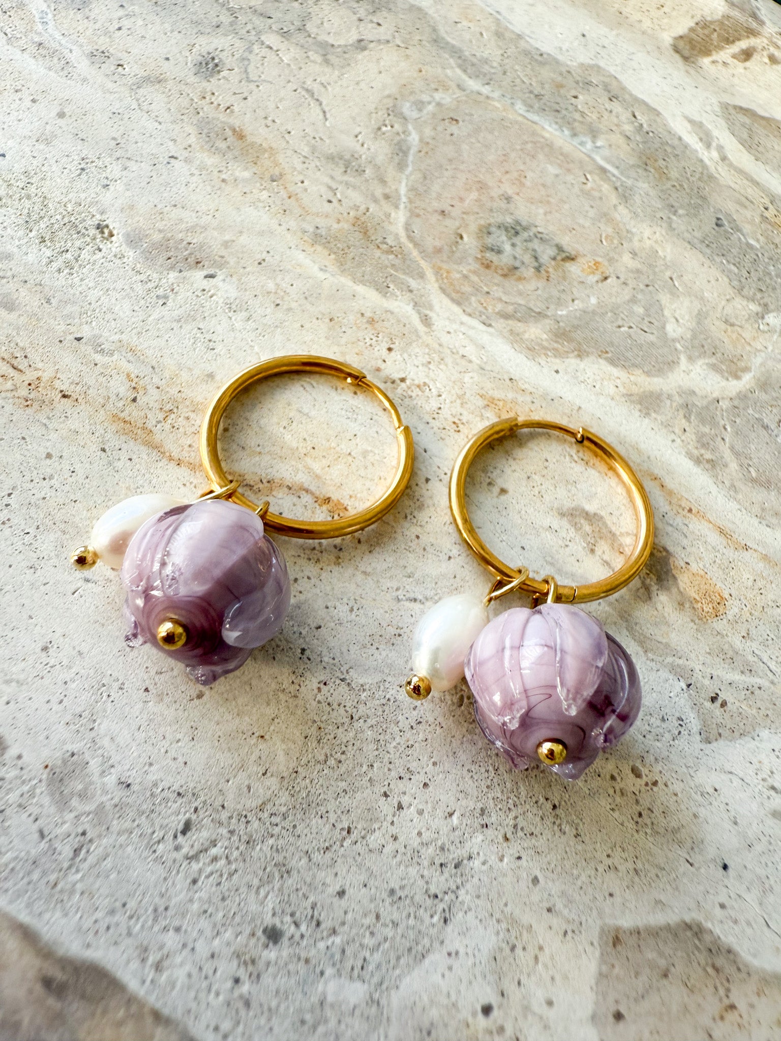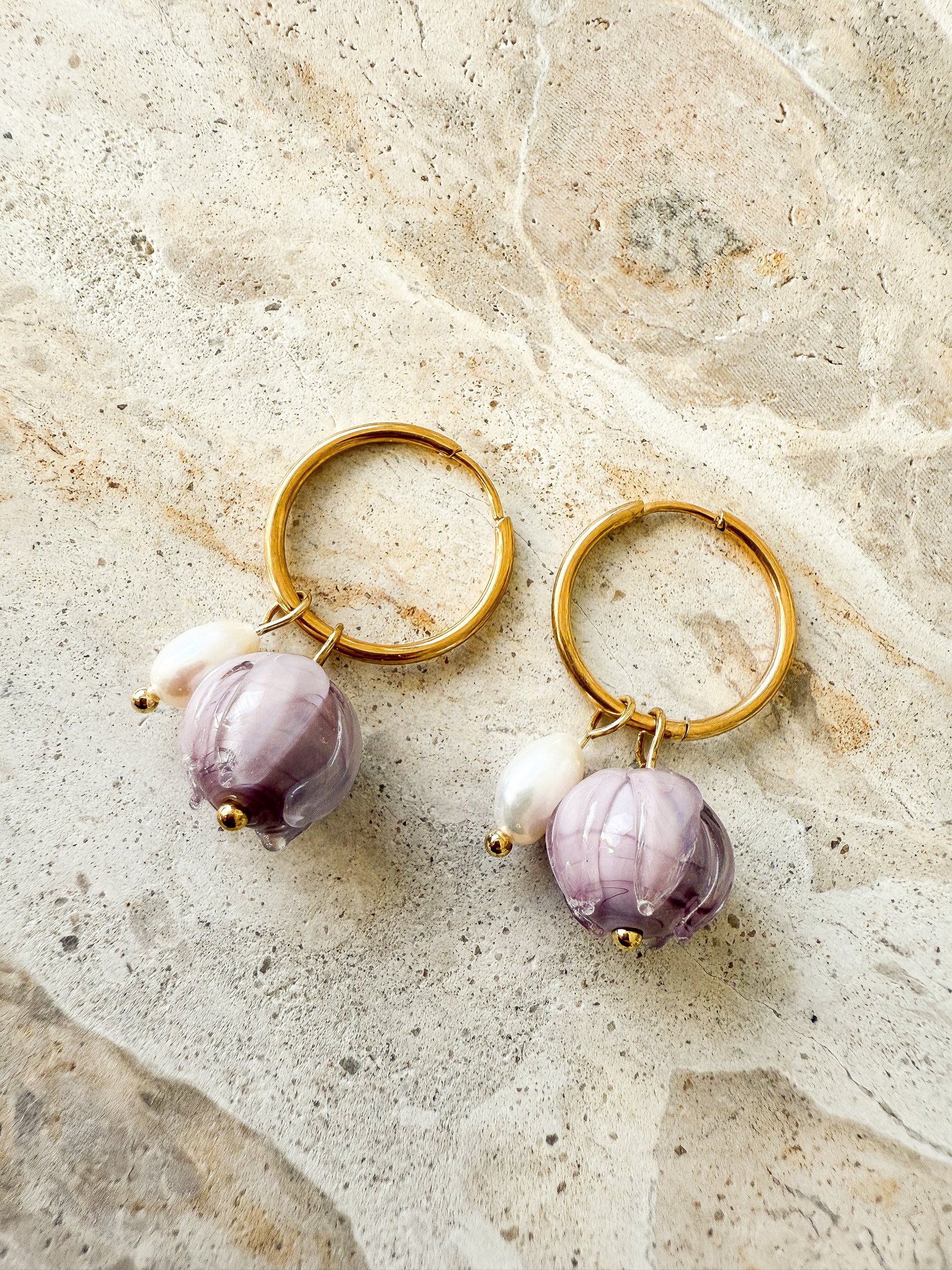 Lila Knospen-Creolen „Amara“ mit Süßwasserperle